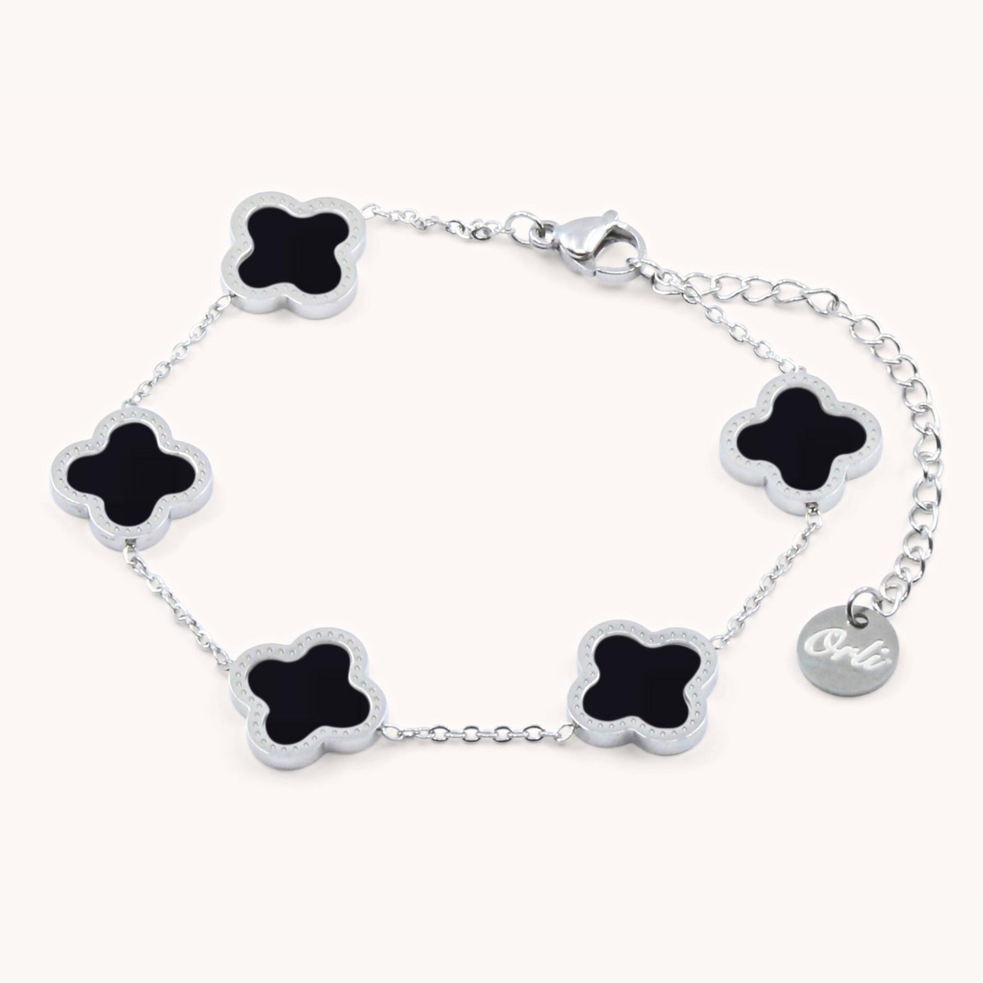 Multi Clover Design: Silver clover connector charms surround this fine bracelet.
