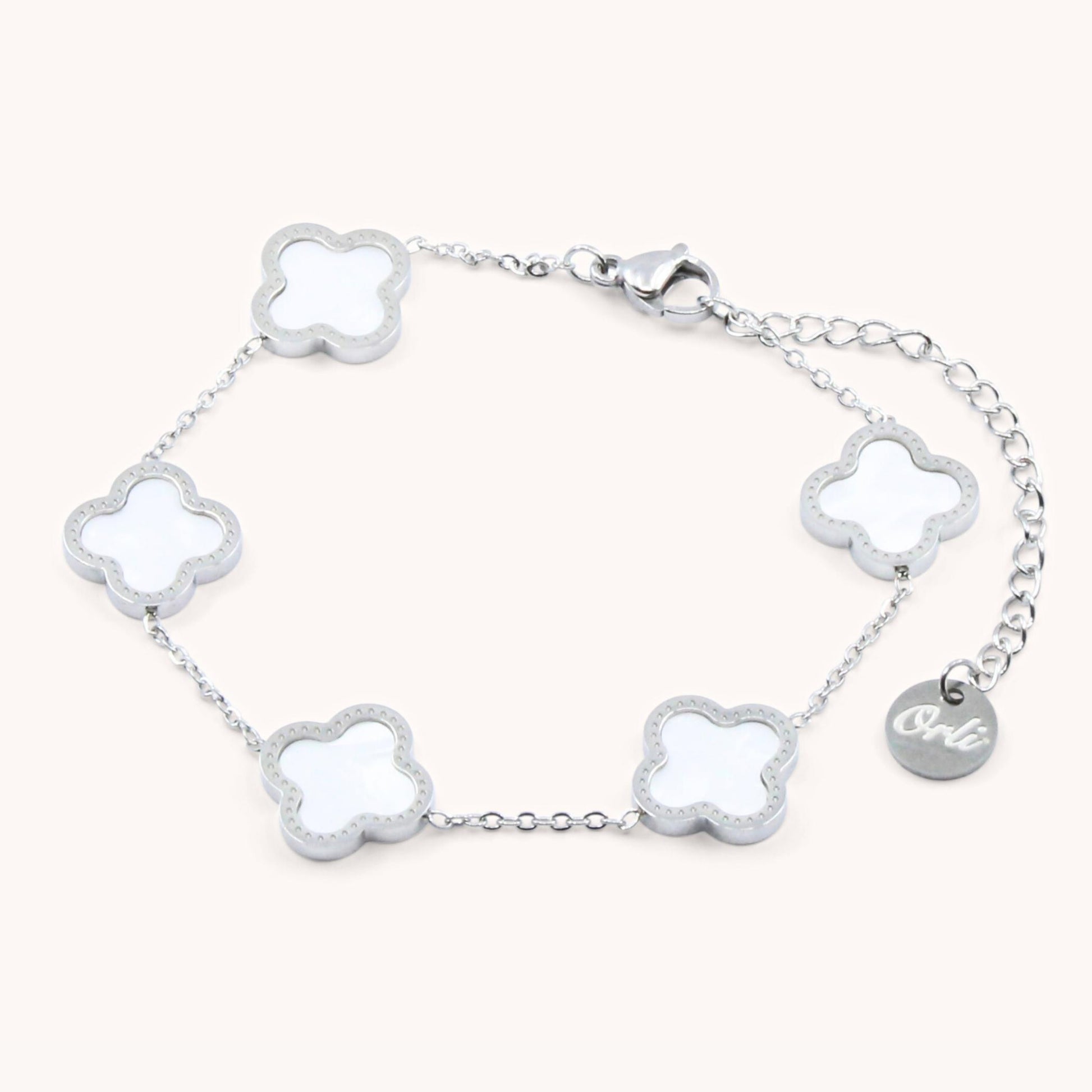Multi Clover Design: Silver clover connector charms surround this fine bracelet.
