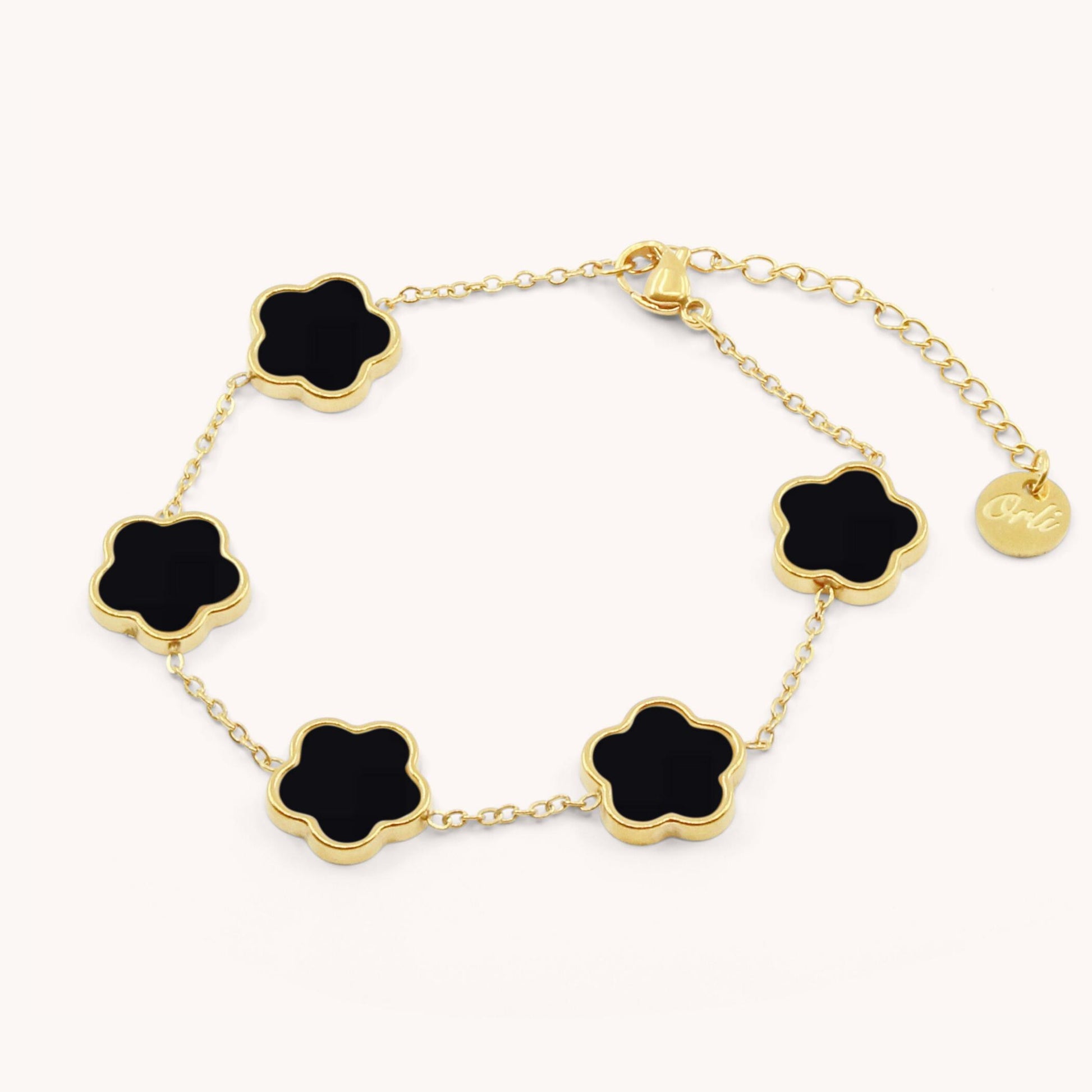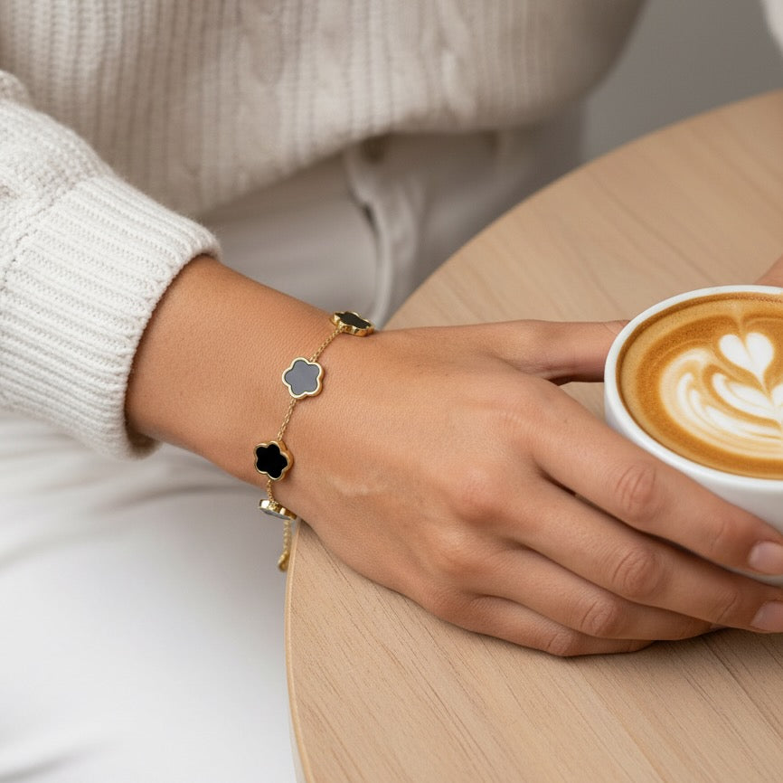 30B2036G - Black Multi Clover Bracelet, Gold