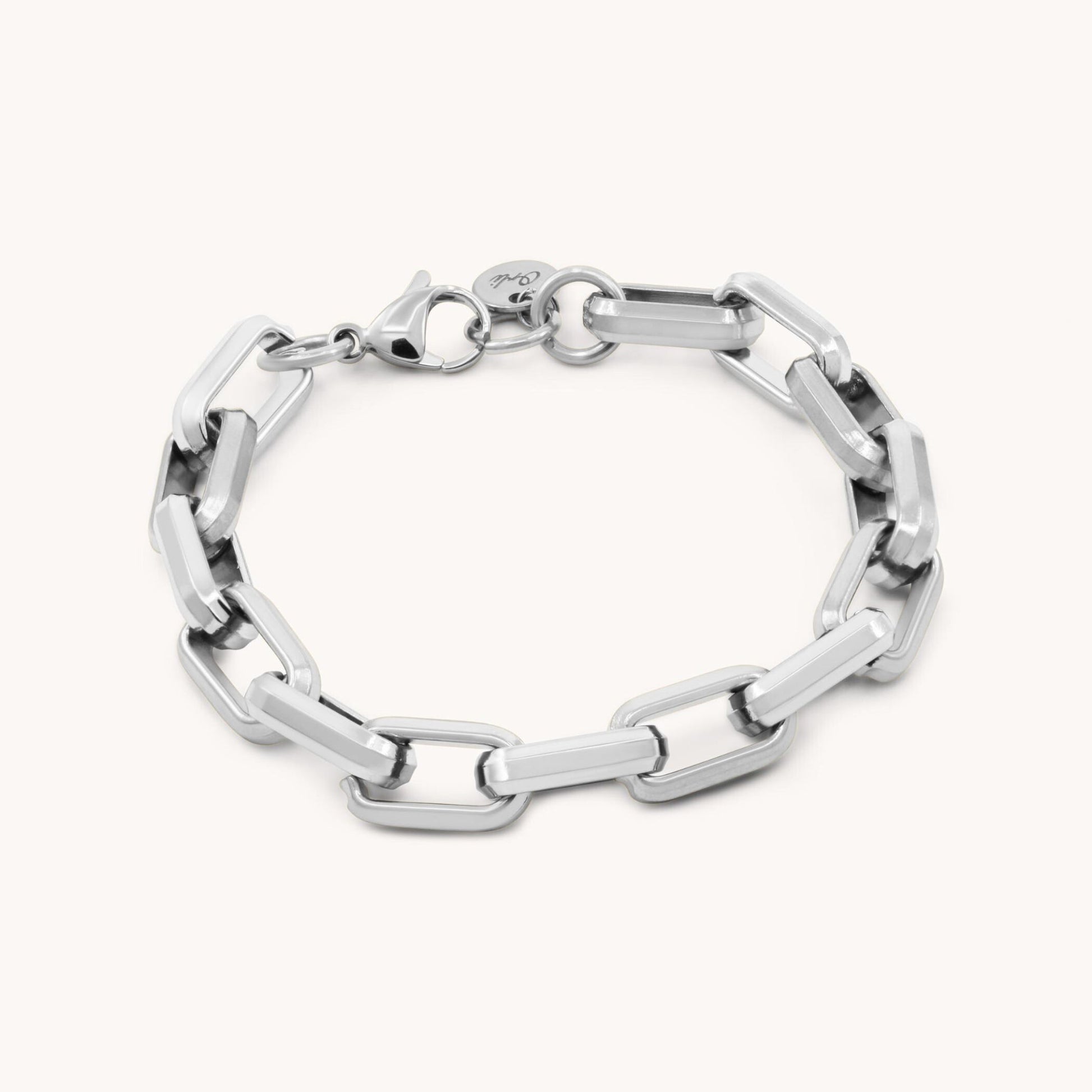Sleek, bold, and effortlessly sophisticated, the Square Link Bracelet is a modern classic. Featuring a striking geometric link design, this bracelet is crafted from stainless steel, offering both durability and timeless elegance. Its chunky yet refined silhouette makes it the perfect statement piece—whether worn alone or stacked with other favourites.