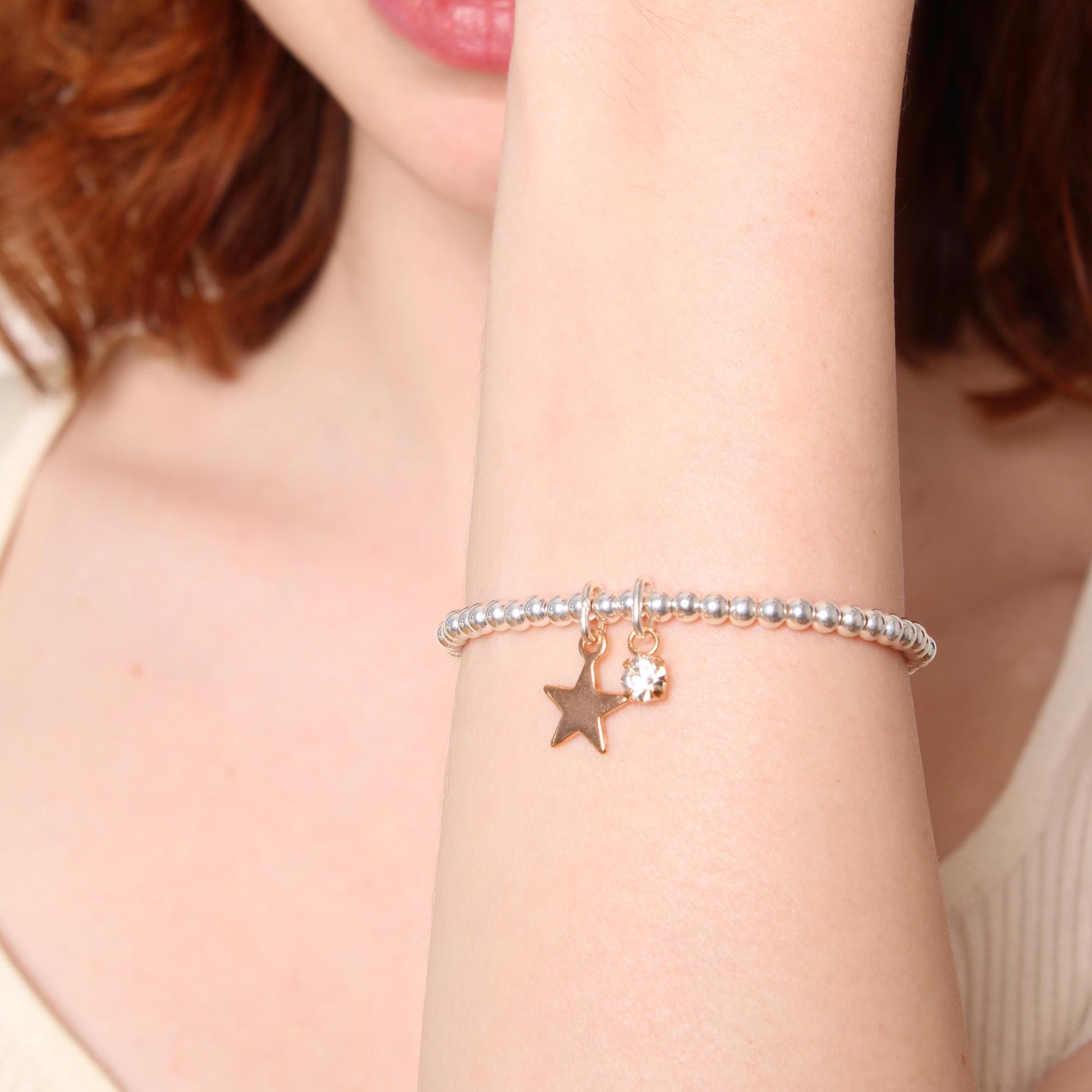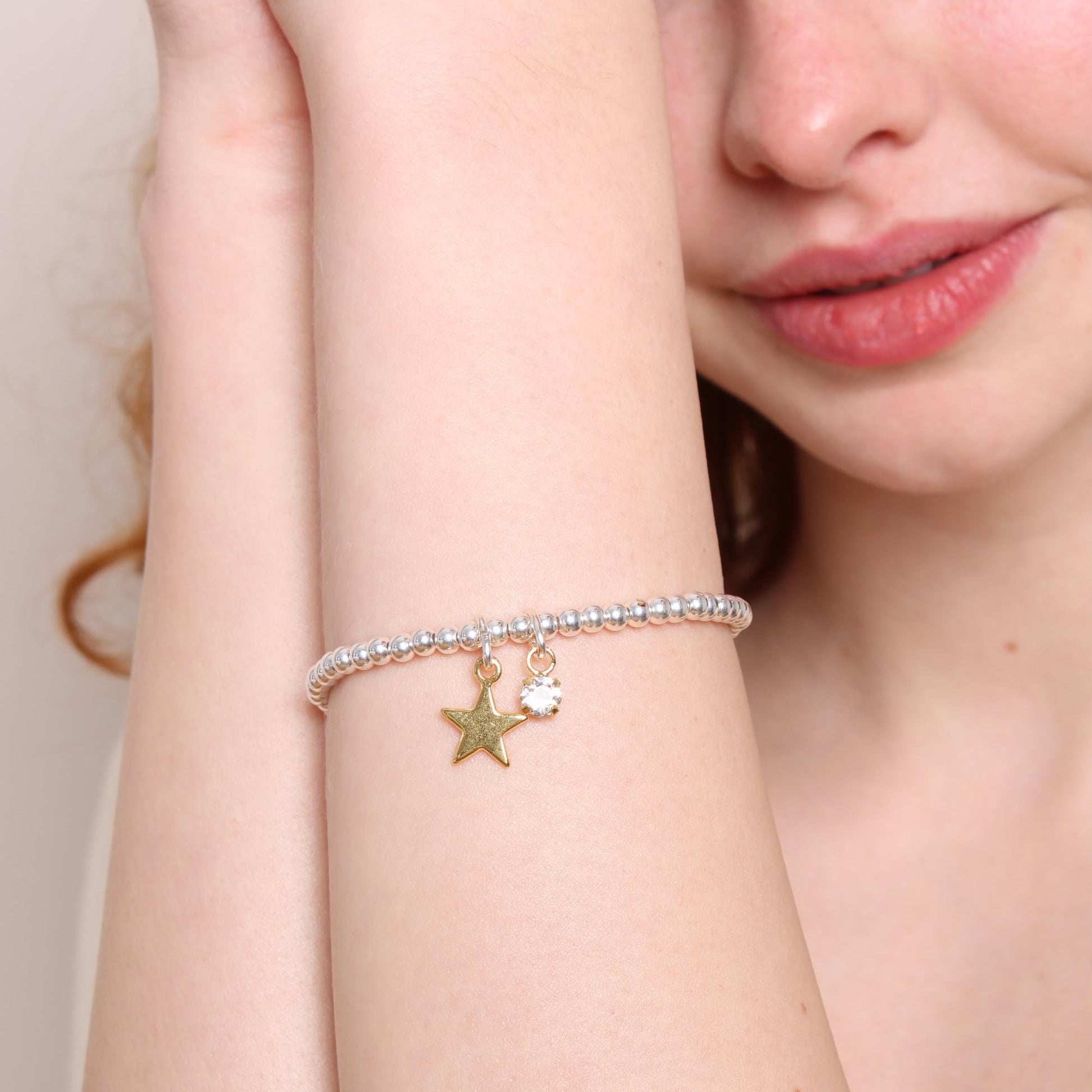 Add a little sparkle to your everyday with this dazzling Star & Birthstone Beads Bracelet. Featuring polished silver-plated beads, a twinkling birthstone charm, and a striking star in your choice of gold, rose gold, or silver—this bracelet is the perfect mix of personal and playful.