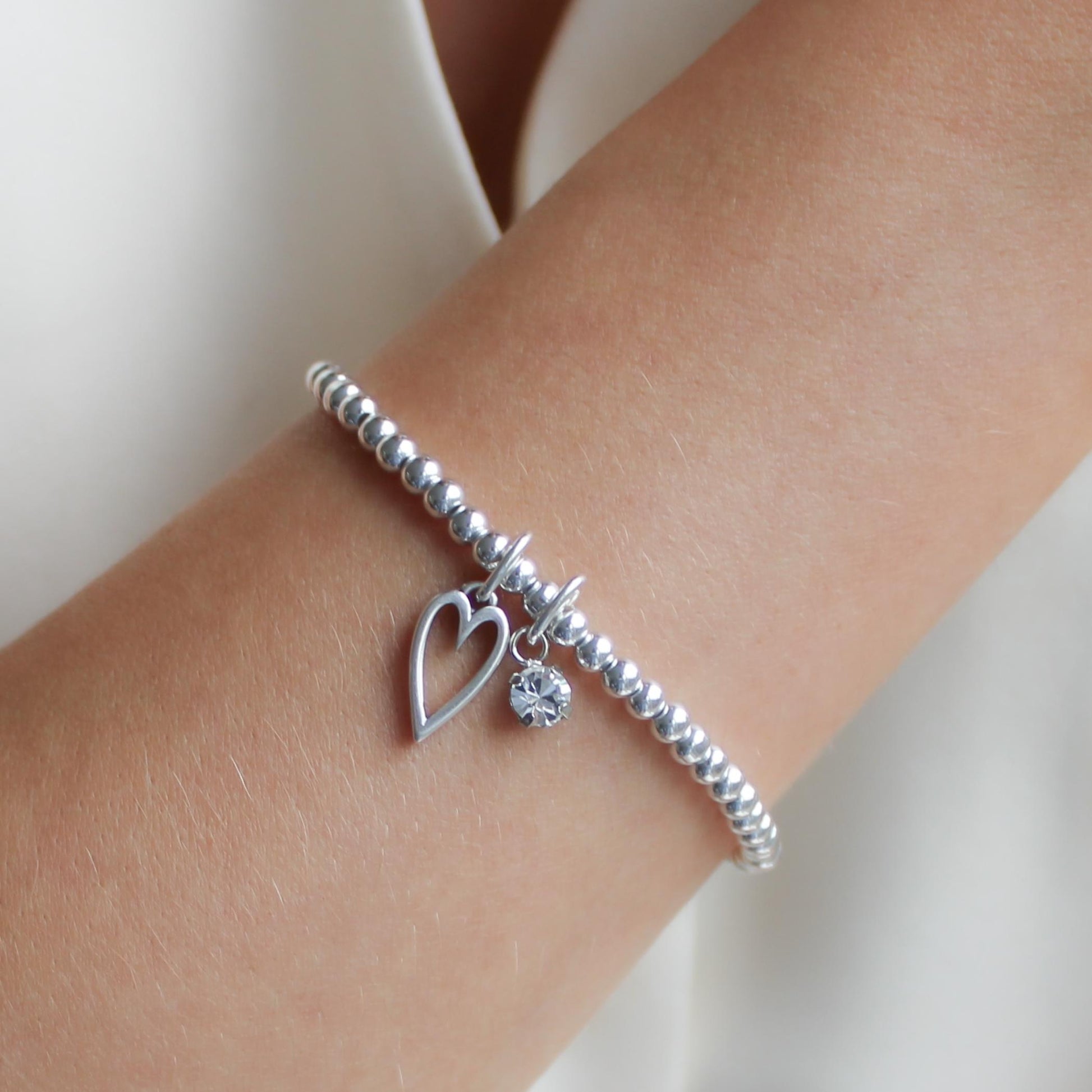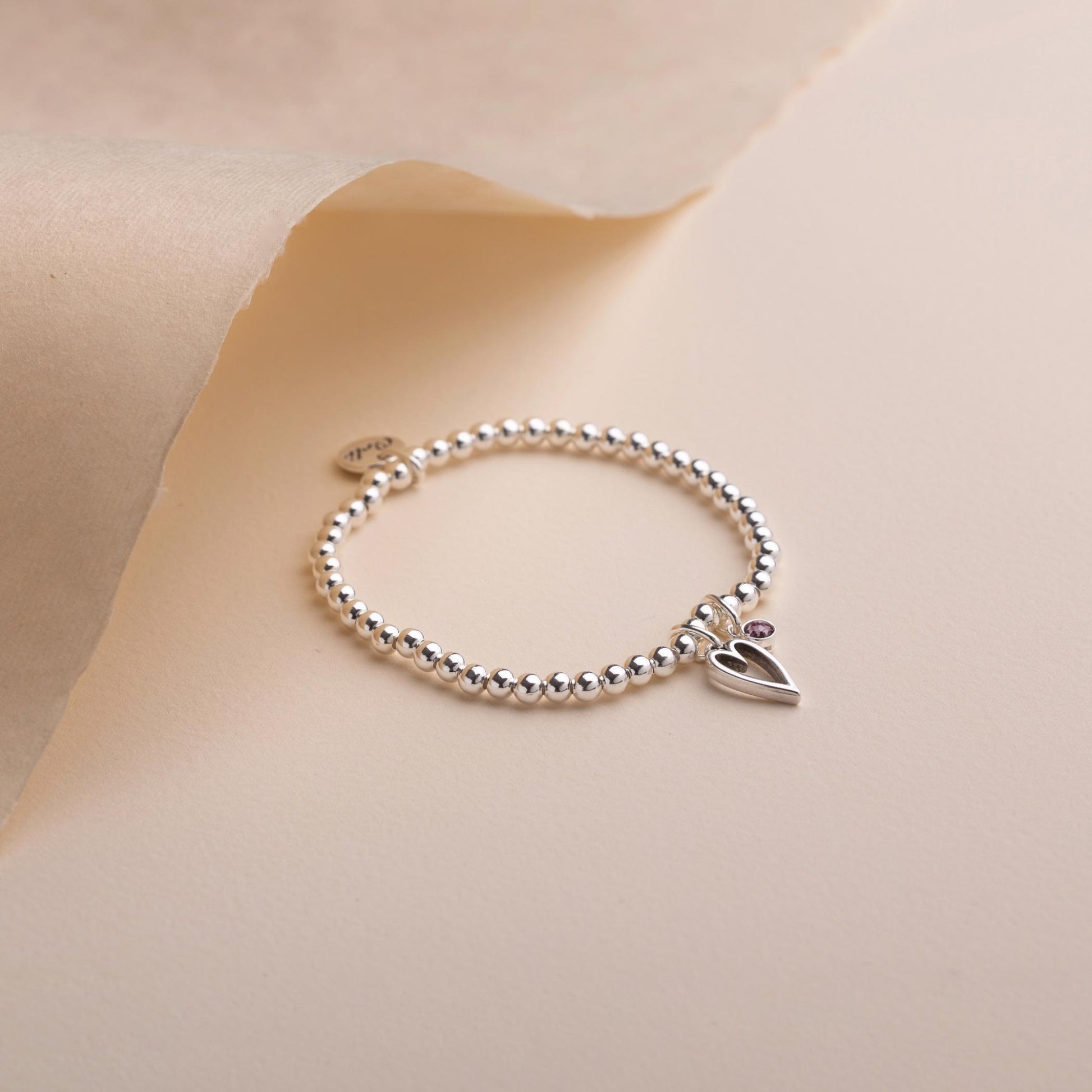 30B2609 - Mini Open Heart & Birthstone Beads Bracelet, Silver