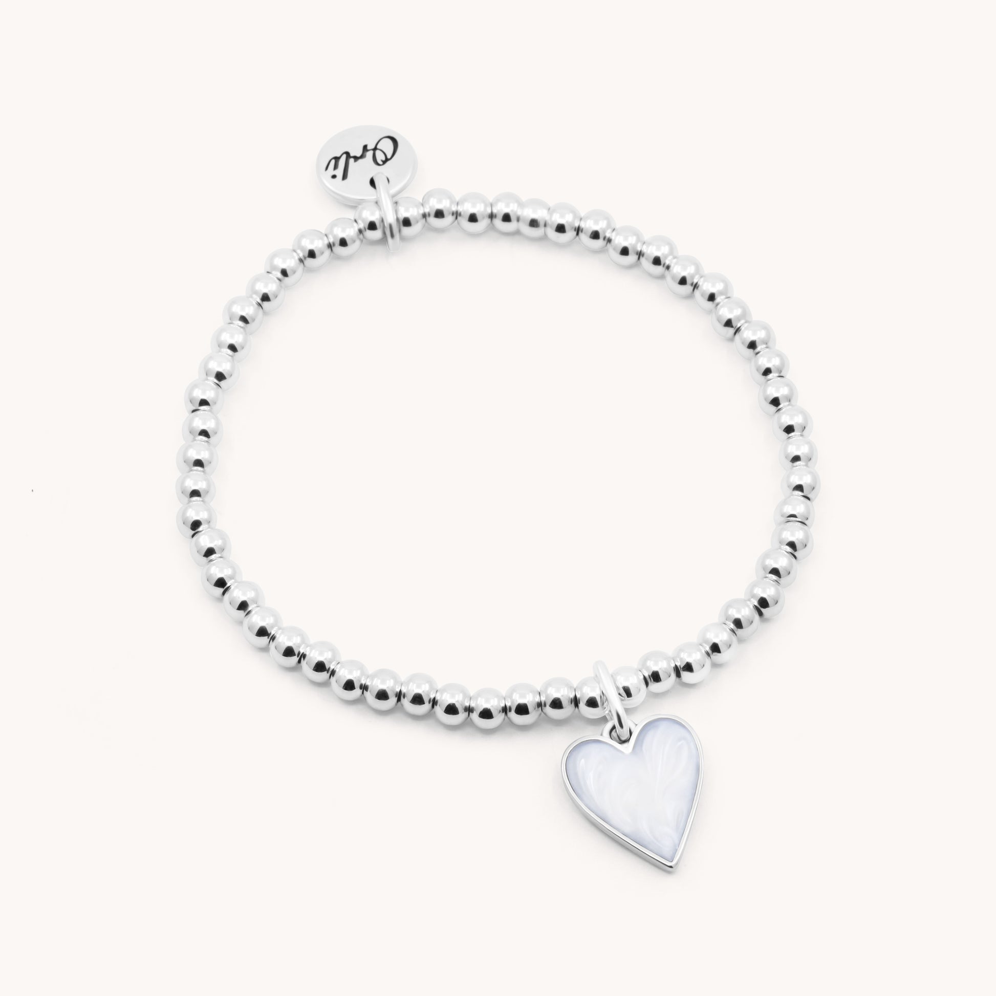 Soft, subtle, and full of charm—this Marble Heart Beads Bracelet adds a modern romantic twist to your jewellery stack. Featuring high-shine silver-plated beads and a marbled enamel heart charm, it’s a statement of love that’s effortlessly wearable.