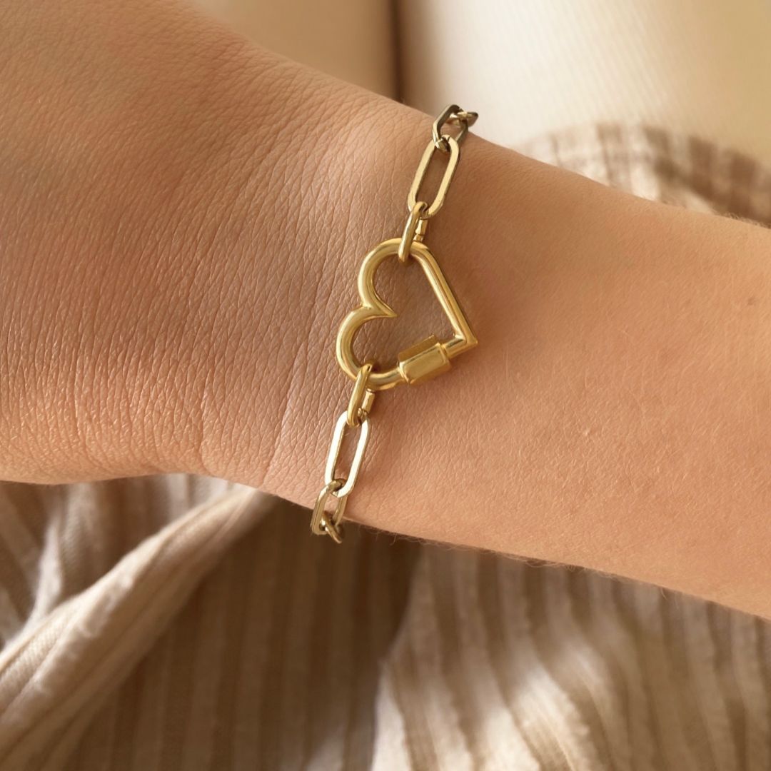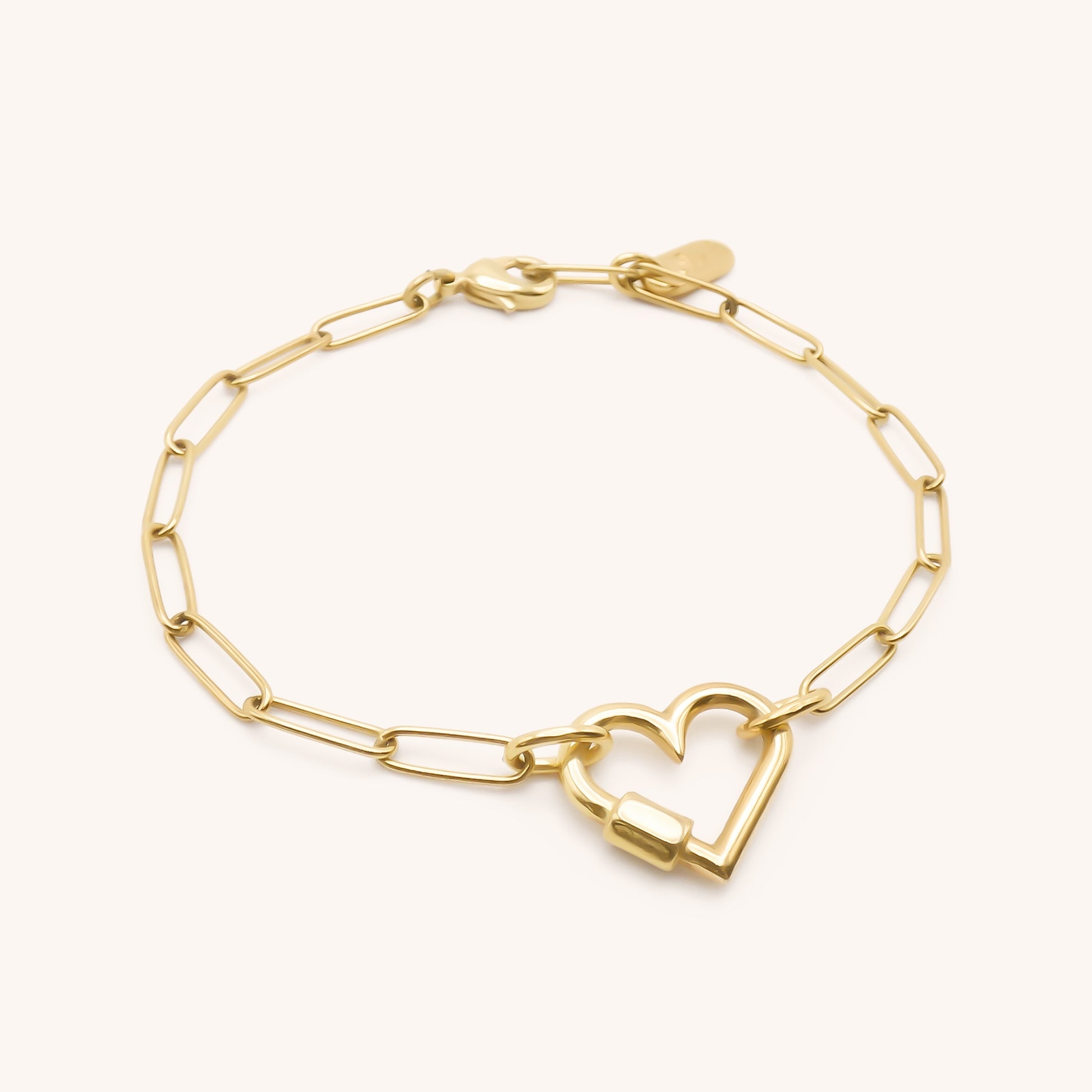 A golden symbol of love, this Heart Lock Paperclip Bracelet is both modern and meaningful. Featuring a lightweight 18k gold-plated stainless steel paperclip chain, it’s finished with a sleek heart-shaped lock charm that adds just the right amount of personality. It’s an easy win for everyday styling, whether worn solo or layered up.