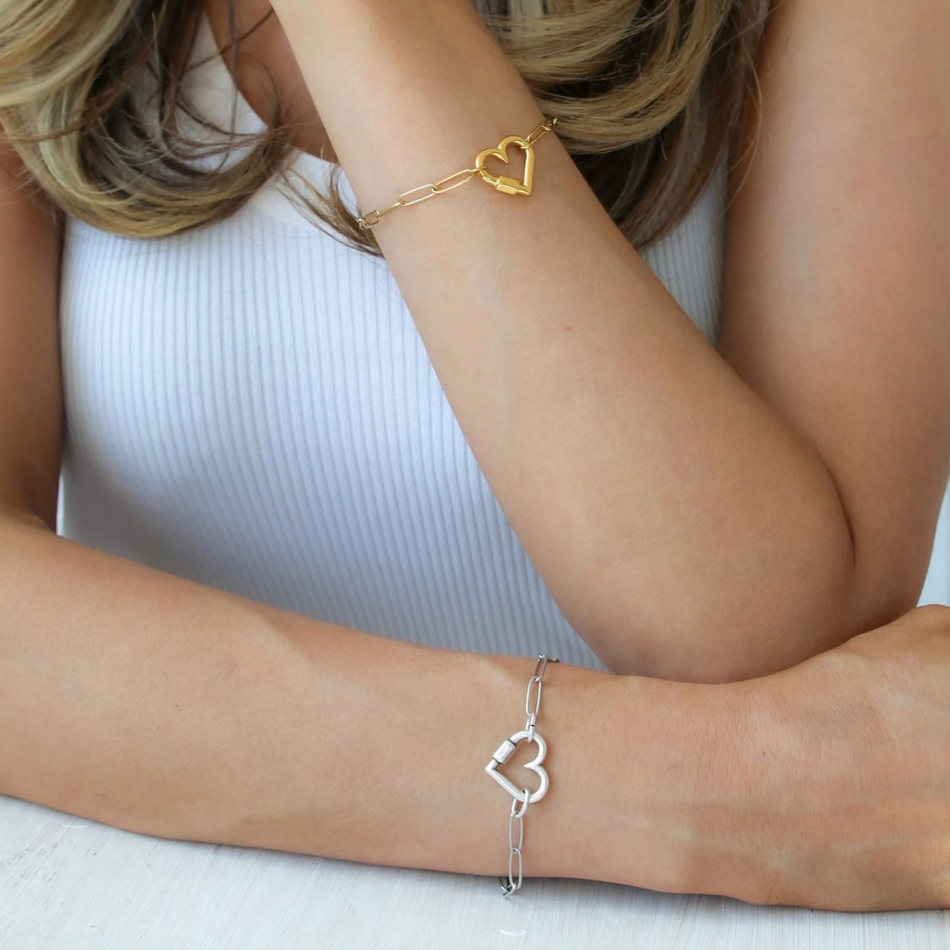 30B2817G - Heart Lock Paperclip Chain Bracelet, Gold