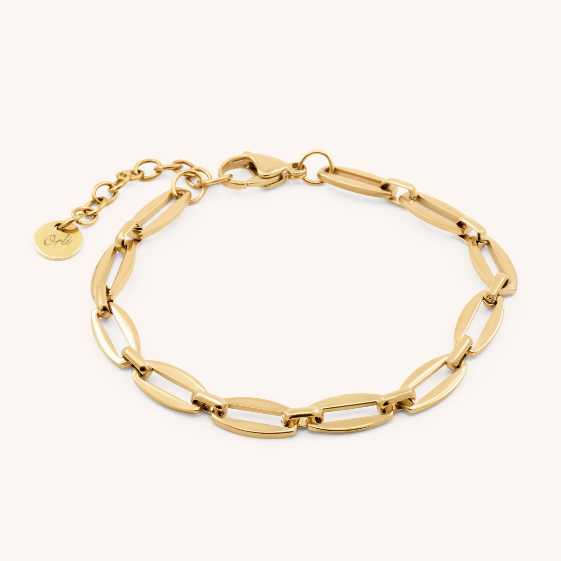 Sleek, simple, and effortlessly bold—the Long Link Chain Bracelet in gold is a timeless staple for every jewellery lover. Crafted from 18k gold-plated stainless steel, it features a statement long-link design with a polished finish and an adjustable fit for everyday ease. Style it solo or stack it high—this is your go-to base for any look.