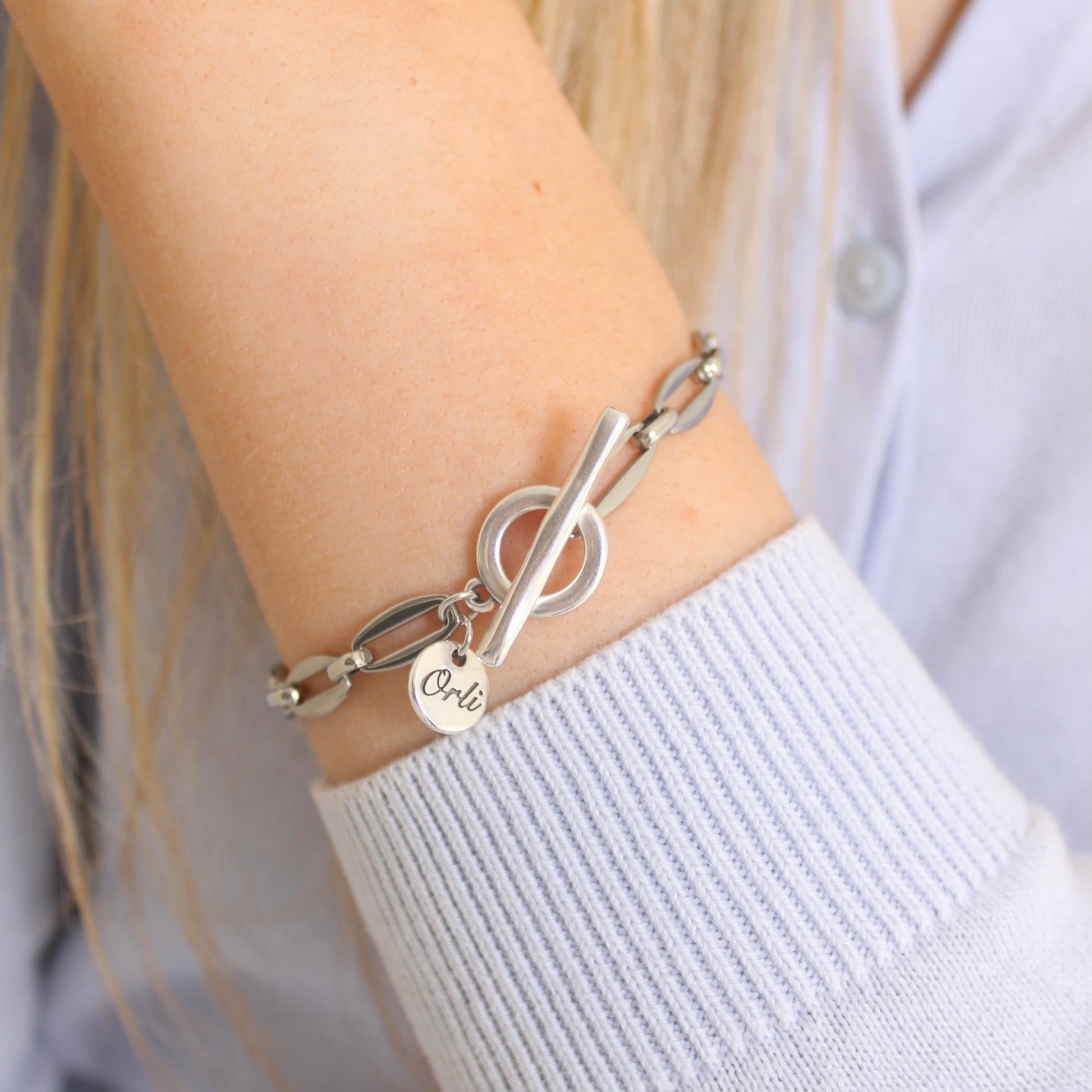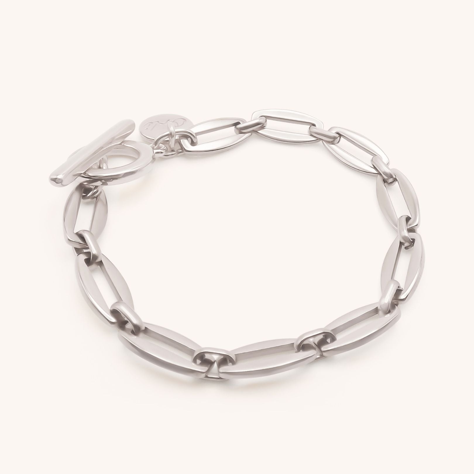 Bold, sleek, and effortlessly on-trend—the Long Link T-Bar Bracelet is your silver go-to for everyday styling. Crafted from high-shine stainless steel, this chunky chain bracelet is finished with a classic T-bar clasp and available in two sizes for the perfect fit. It's minimal, modern, and made to stack.
