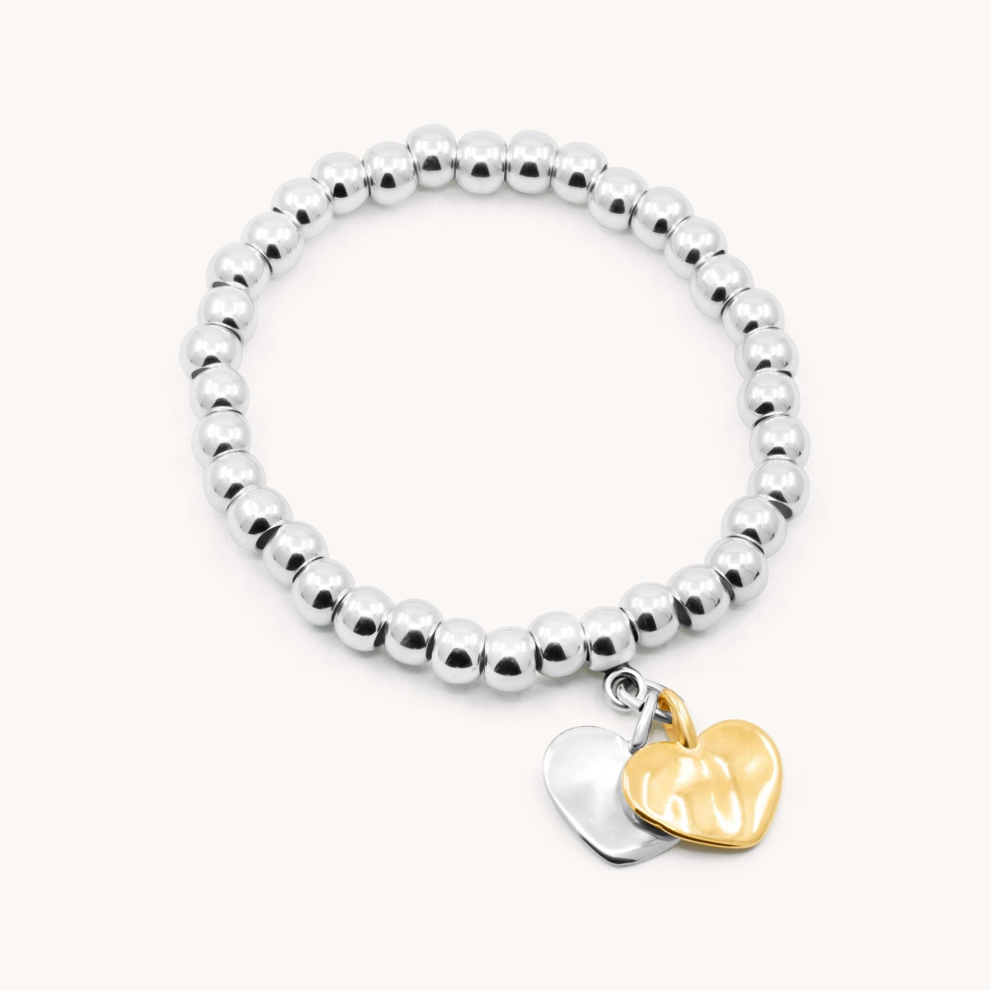 30B2956SG - Twin Hayley Heart Chunky Beads Bracelet, Silver and Gold