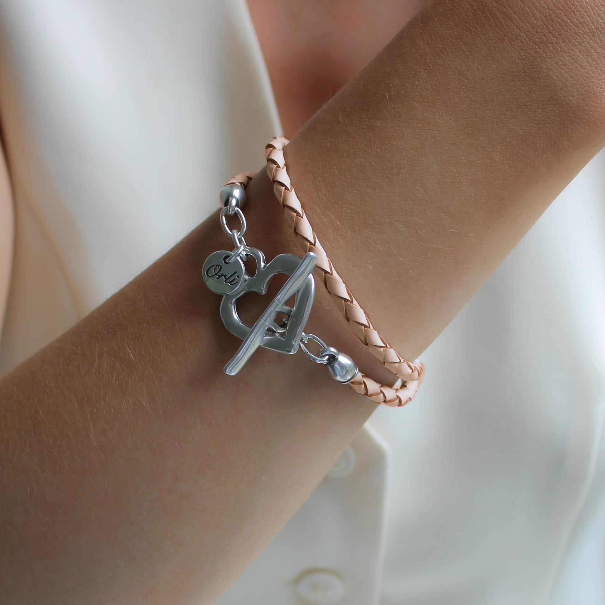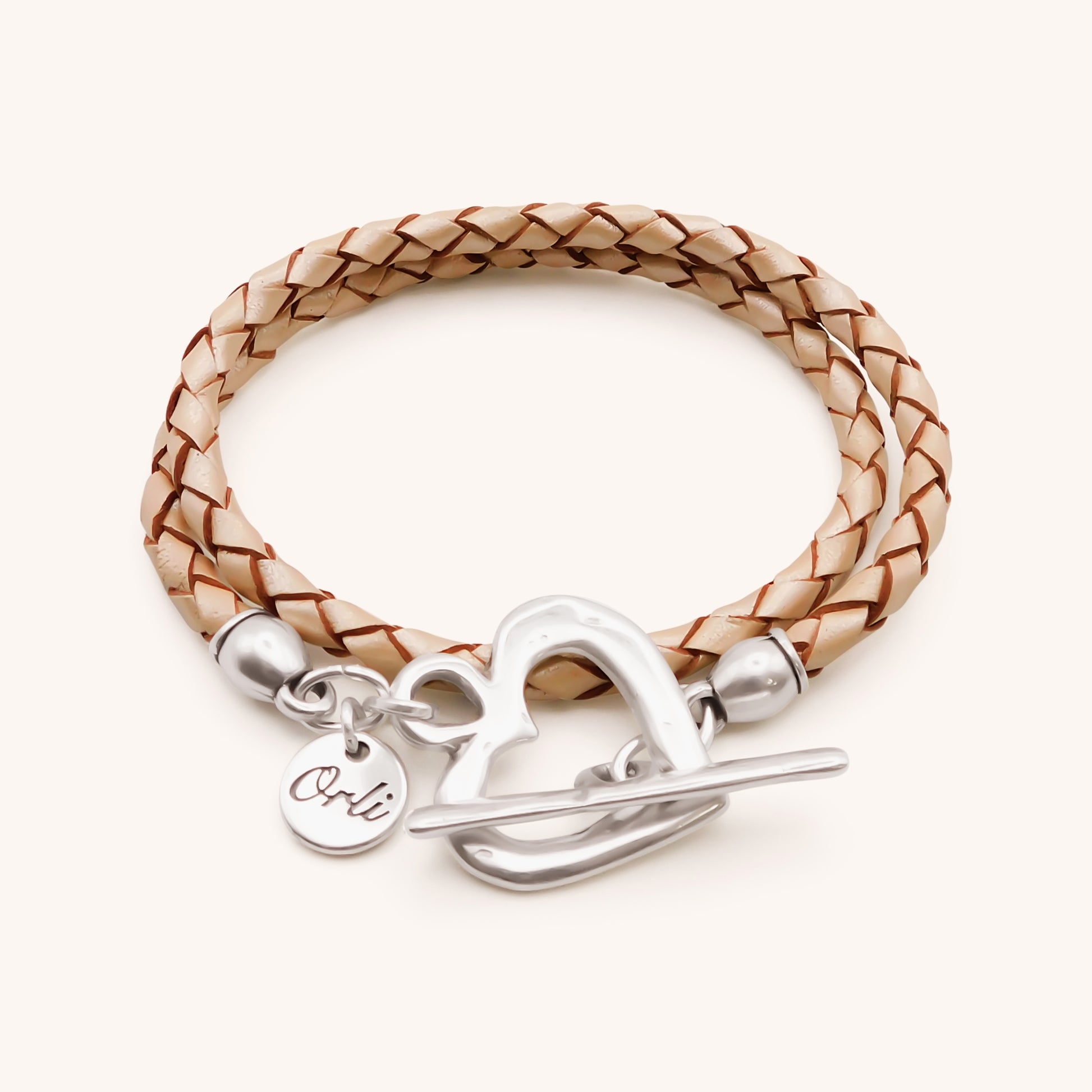 This pearlised nude bracelet blends subtle shimmer with timeless silver. Finished with a polished silver toggle clasp, it’s a graceful essential for everyday elegance.