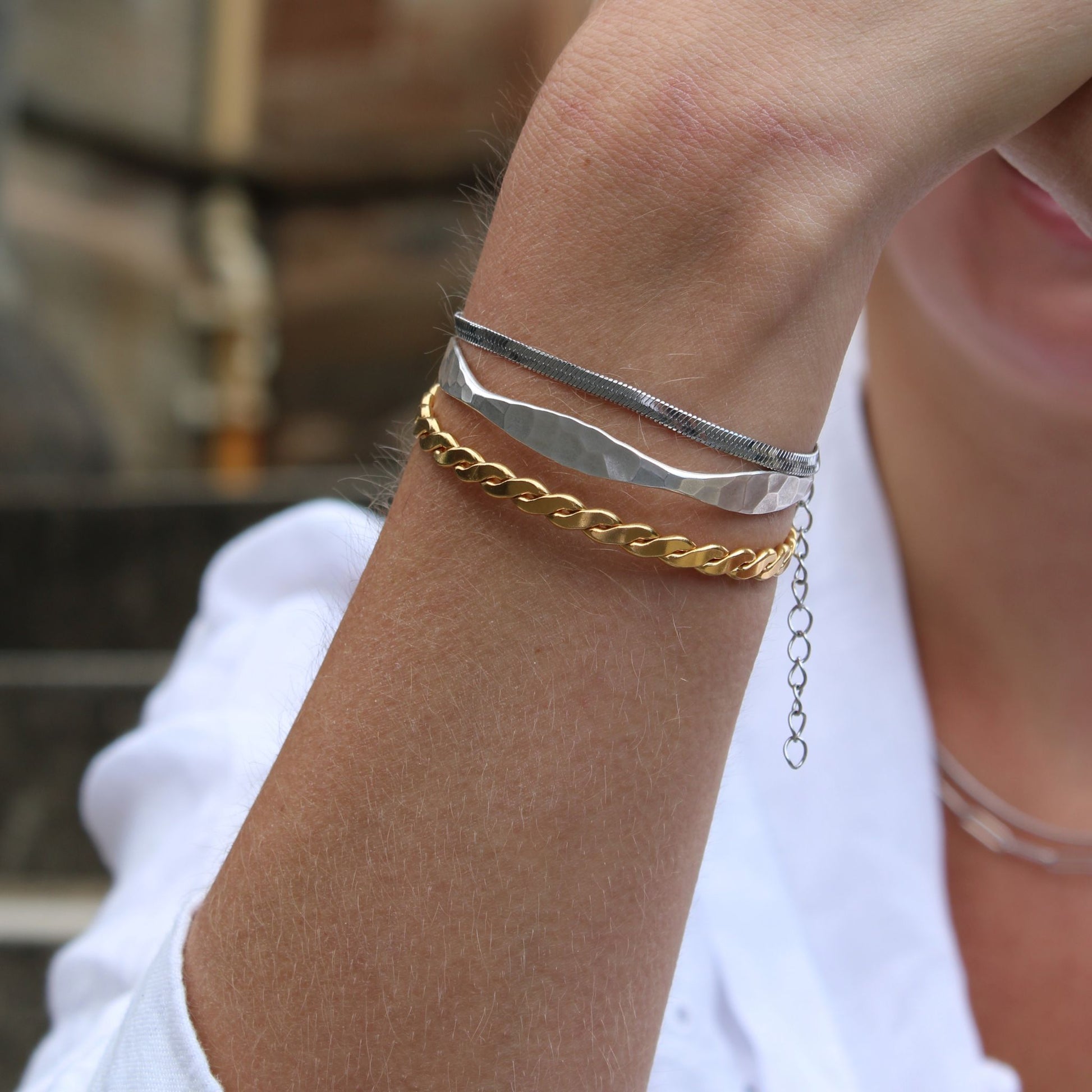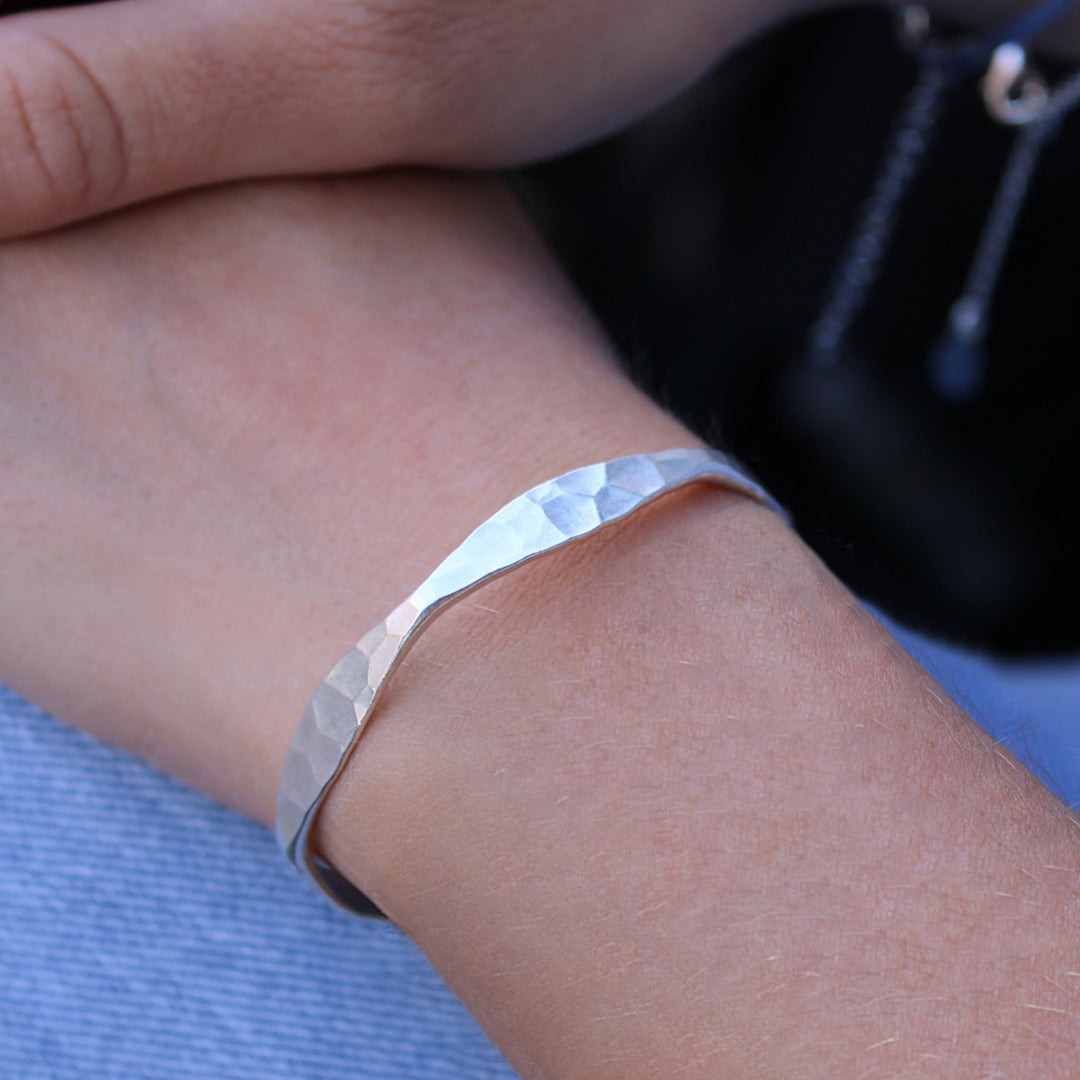 Understated and timeless – this open cuff bangle showcases a natural hammered texture and open design, perfect for layering or wearing solo.