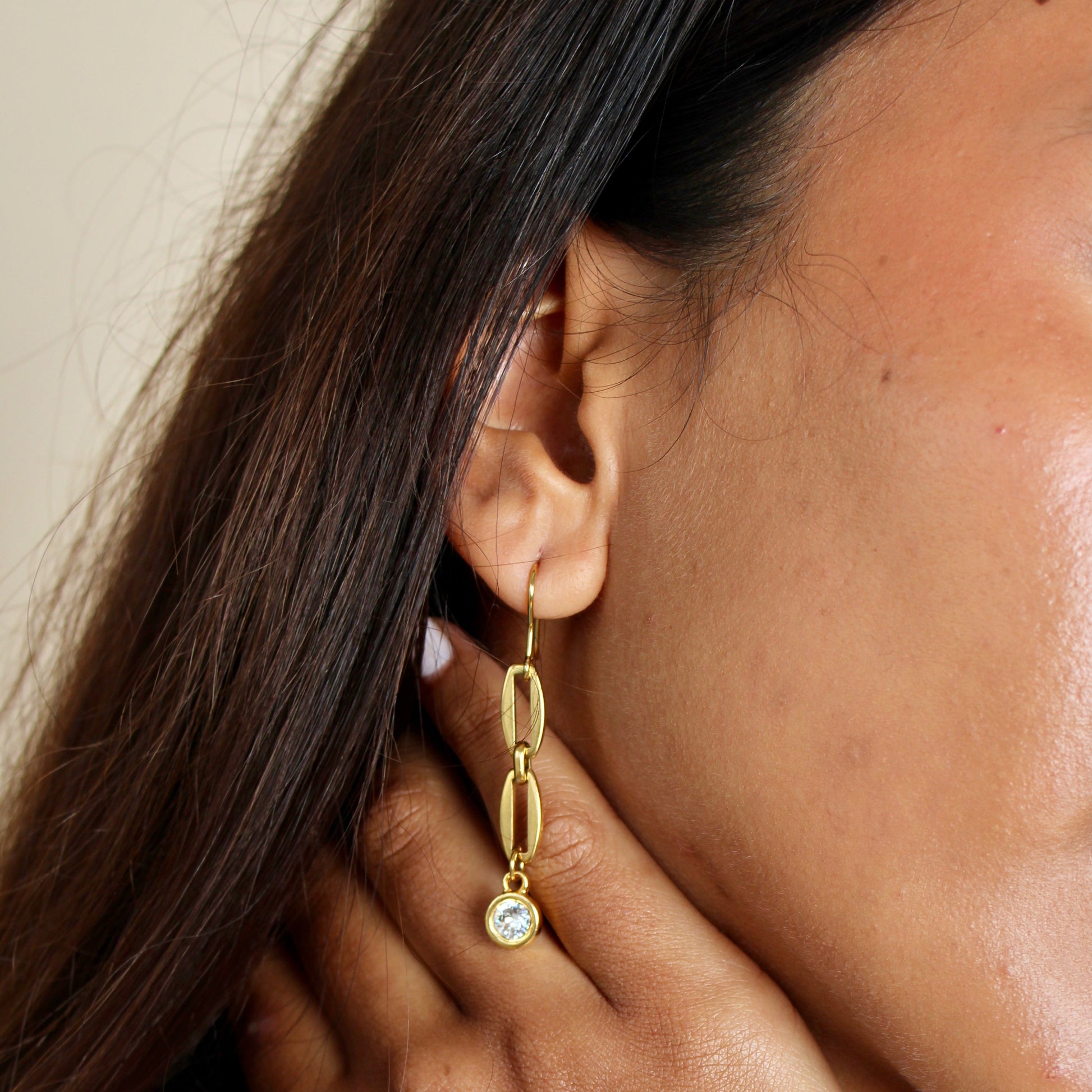 30E3065G - Long Link Birthstone Earrings, Gold