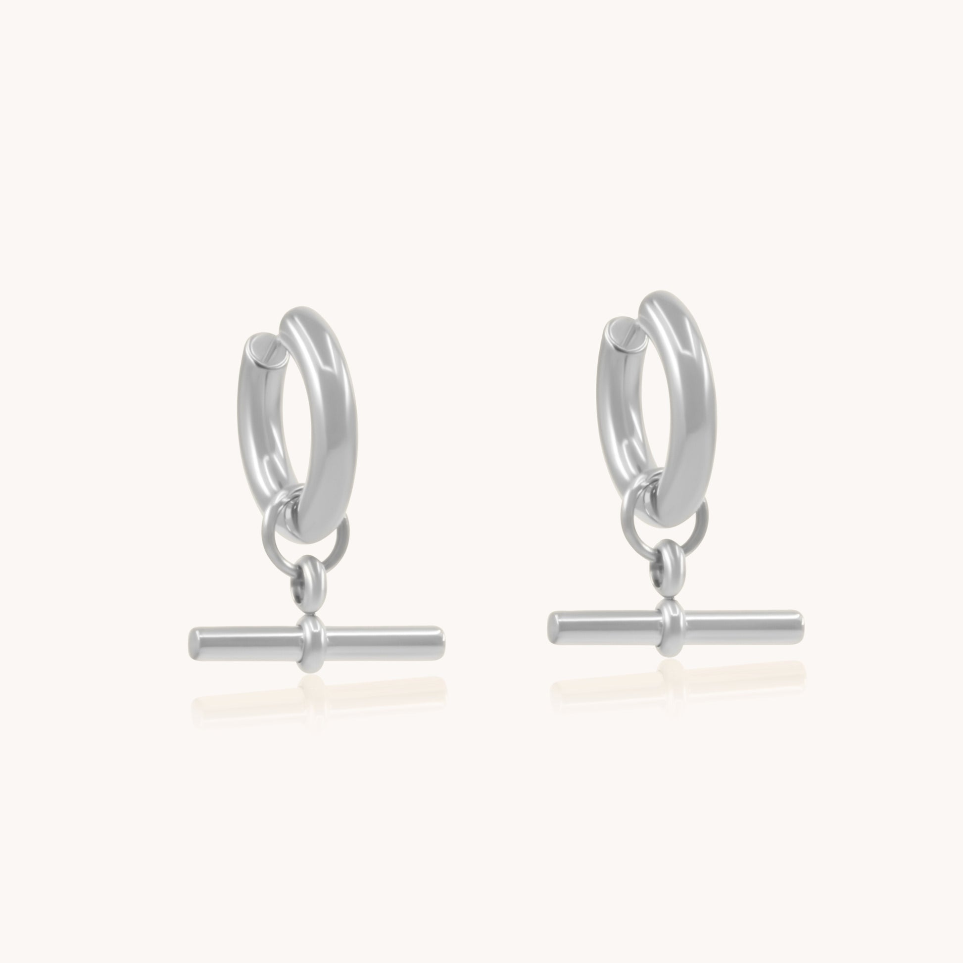 - Design: Sleek huggie hoops with a minimalist T-bar charm.