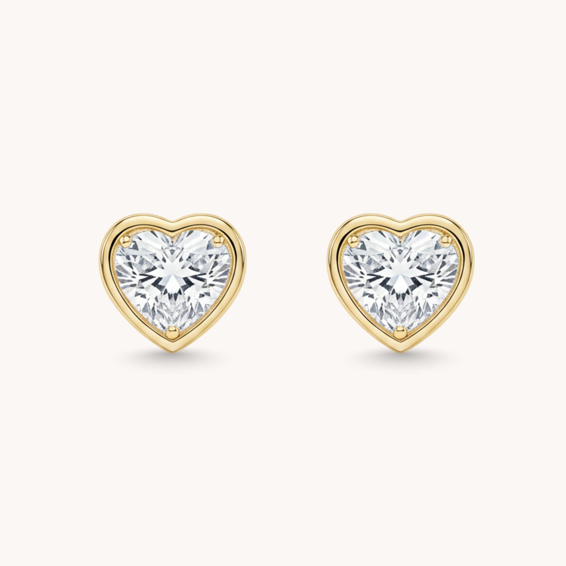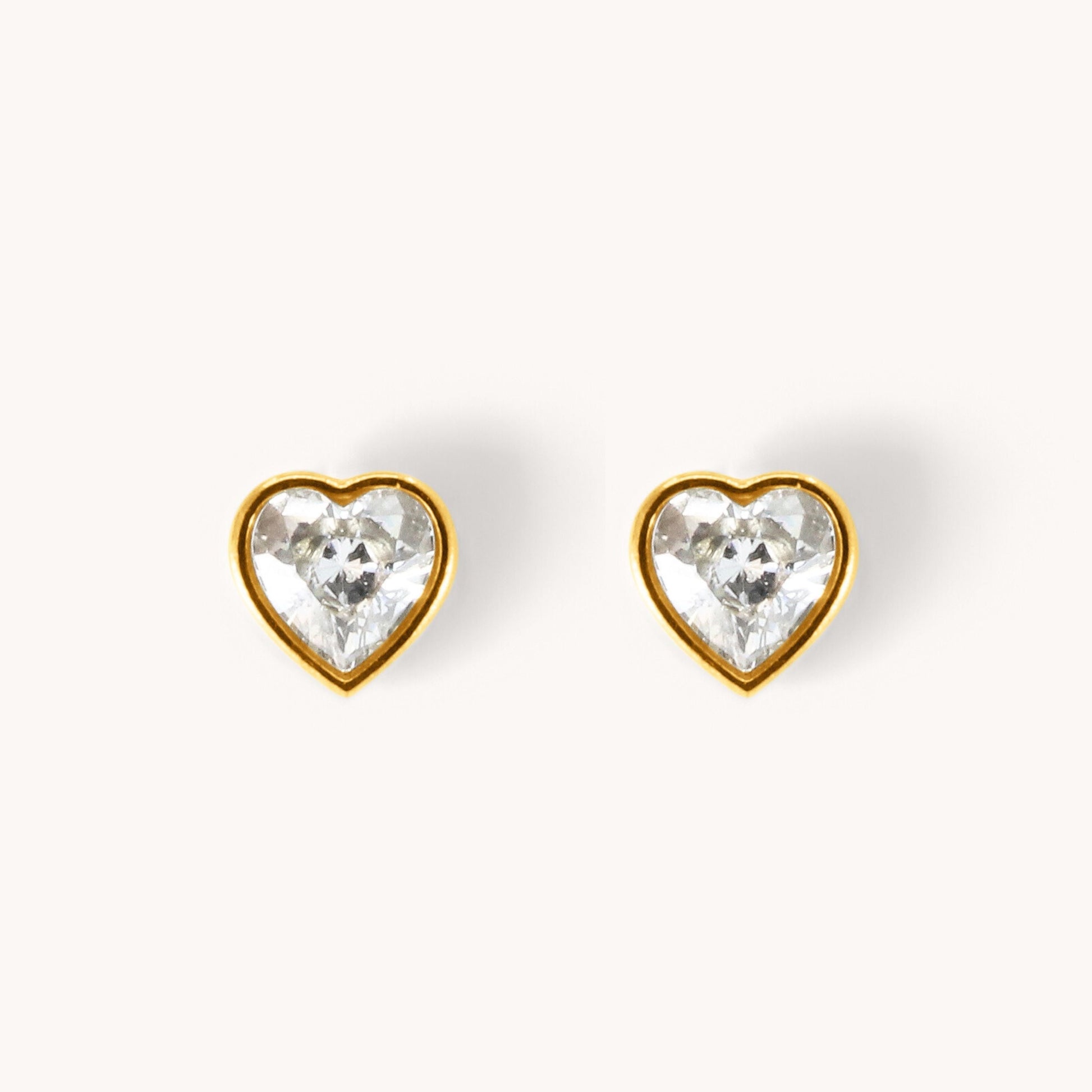 Design Element: Heart-shaped crystal studs with a polished bezel setting.