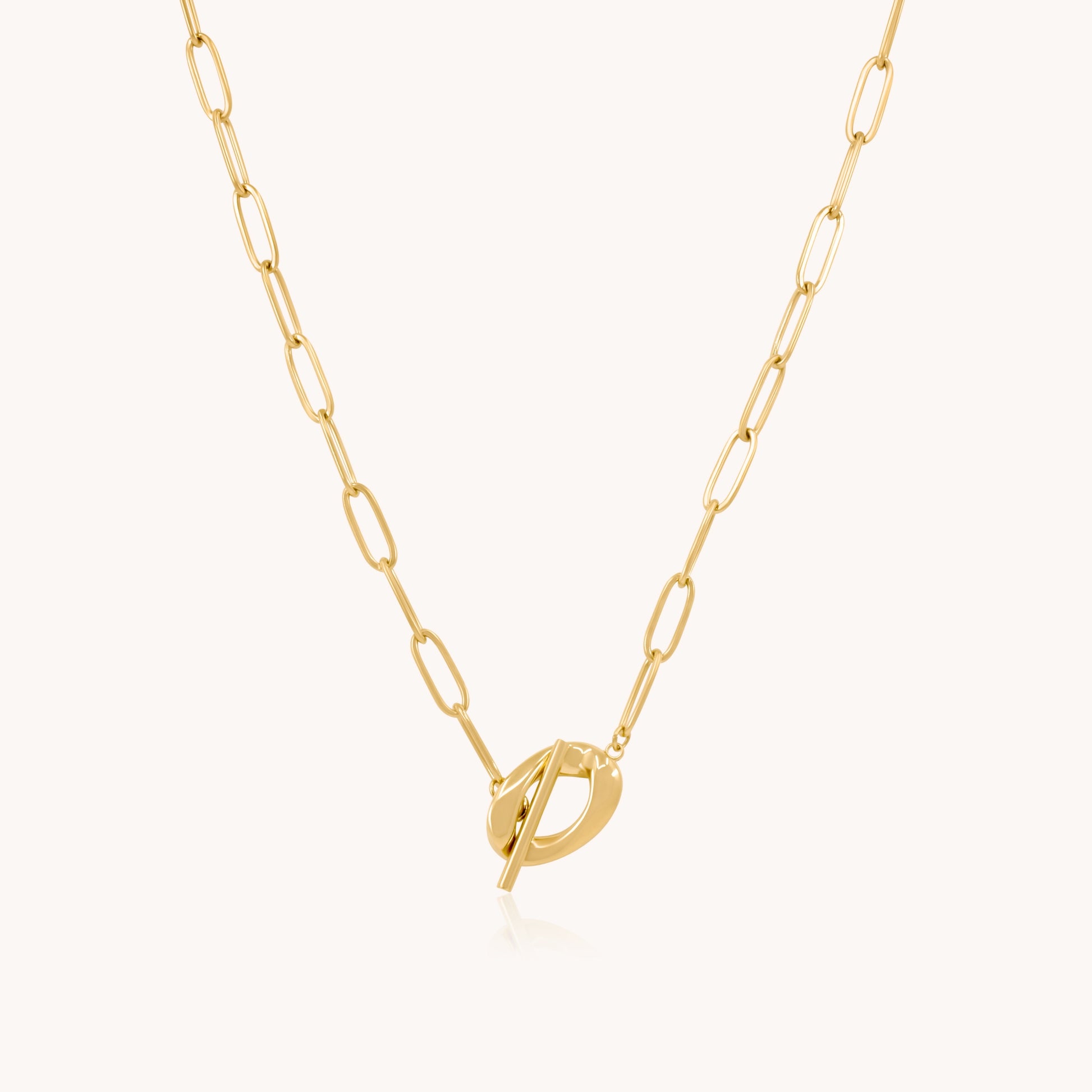 Add a modern twist to your jewellery collection with our Twisted T-Bar Necklace. Featuring an elegant paperclip chain and a sleek twisted toggle clasp, this versatile piece adds effortless style whether worn solo or layered. A timeless essential you’ll reach for every day.