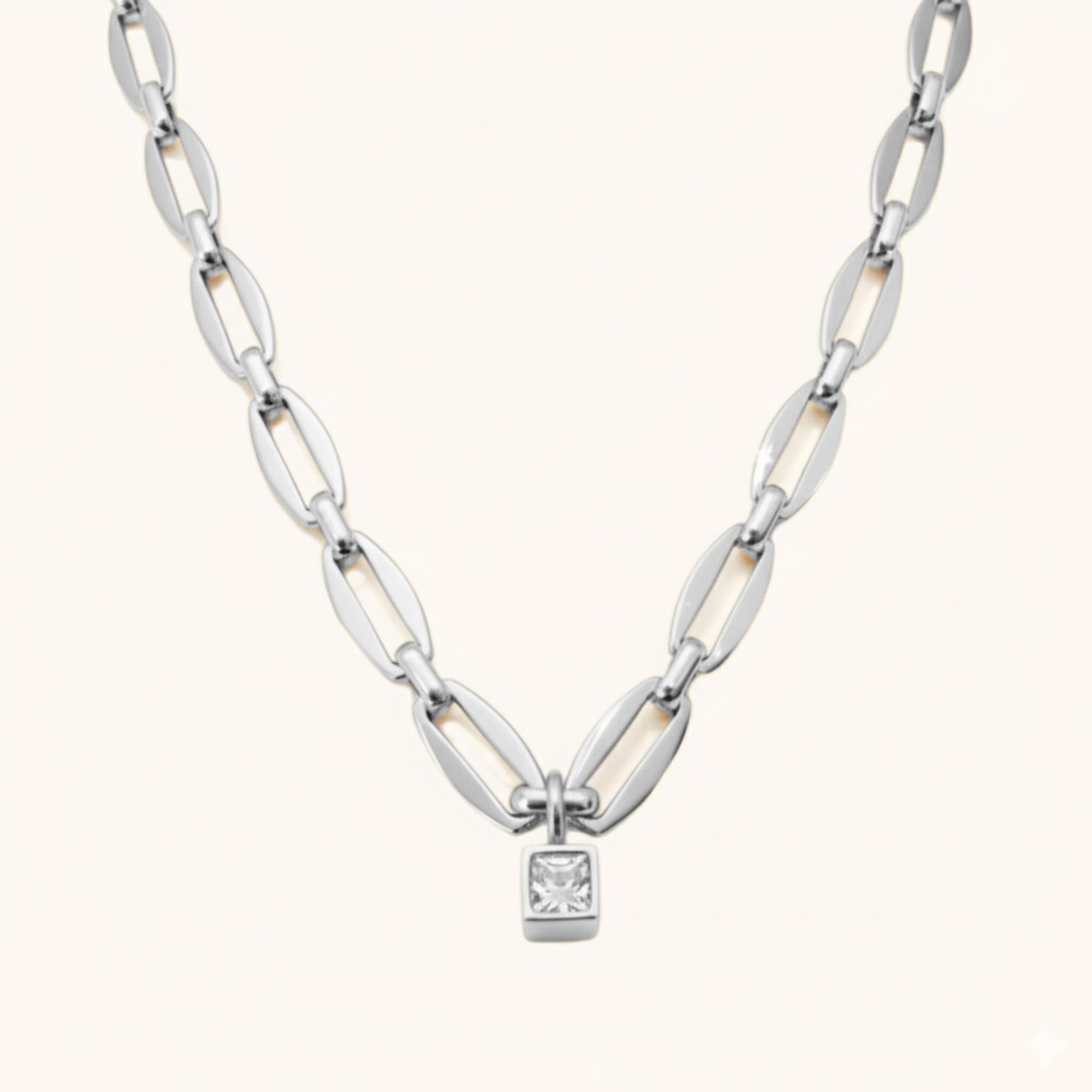Add sparkle to any outfit. The Long Link Personalised Birthstone Necklace features a long link chain with a small crystal pendant in the centre. The crystal can be customised to any birthstone of your choice. The perfect gift for any jewellery lover.