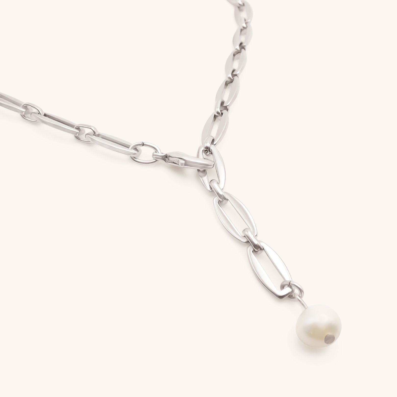 30N1889 - Long Link Adjustable Pearl Necklace, Silver