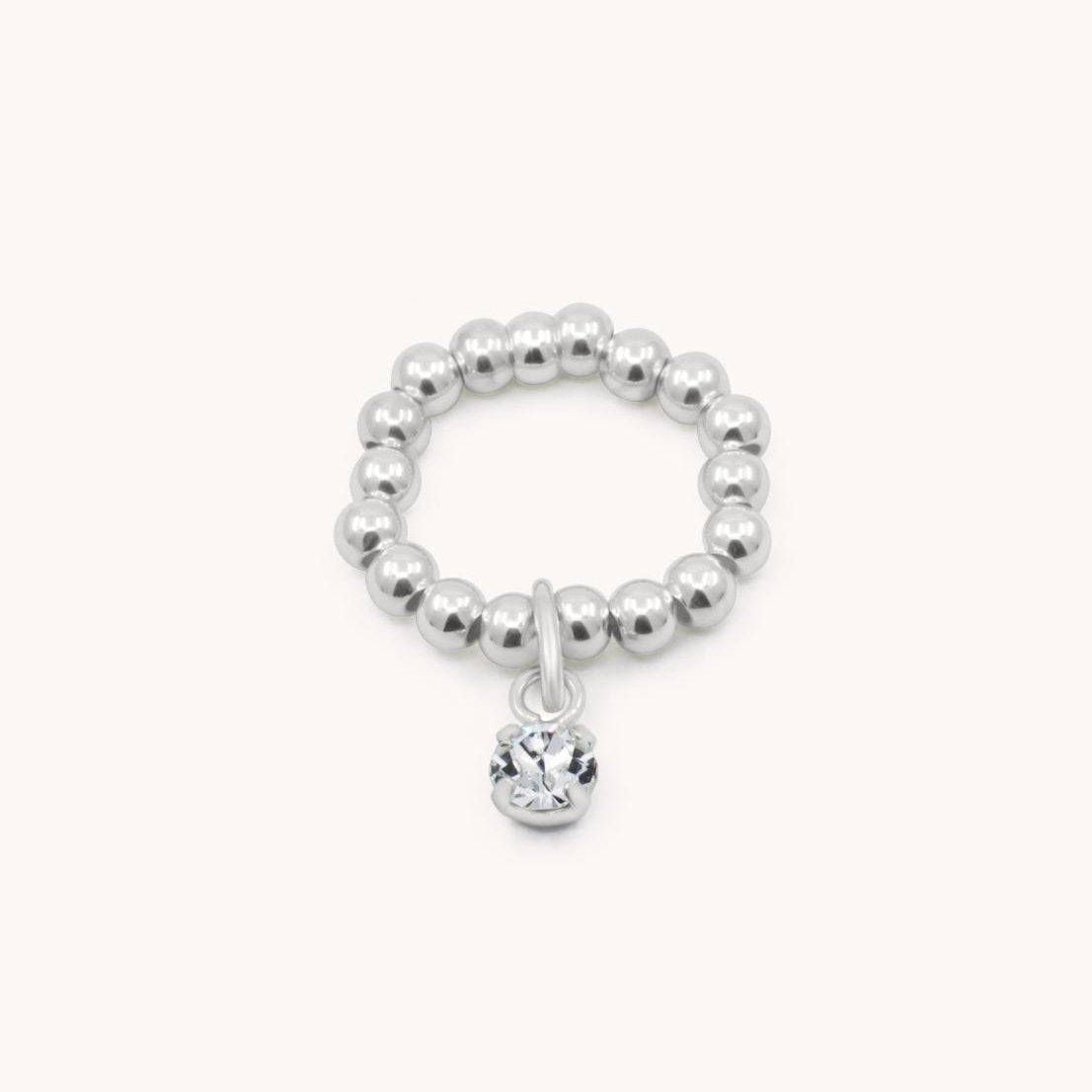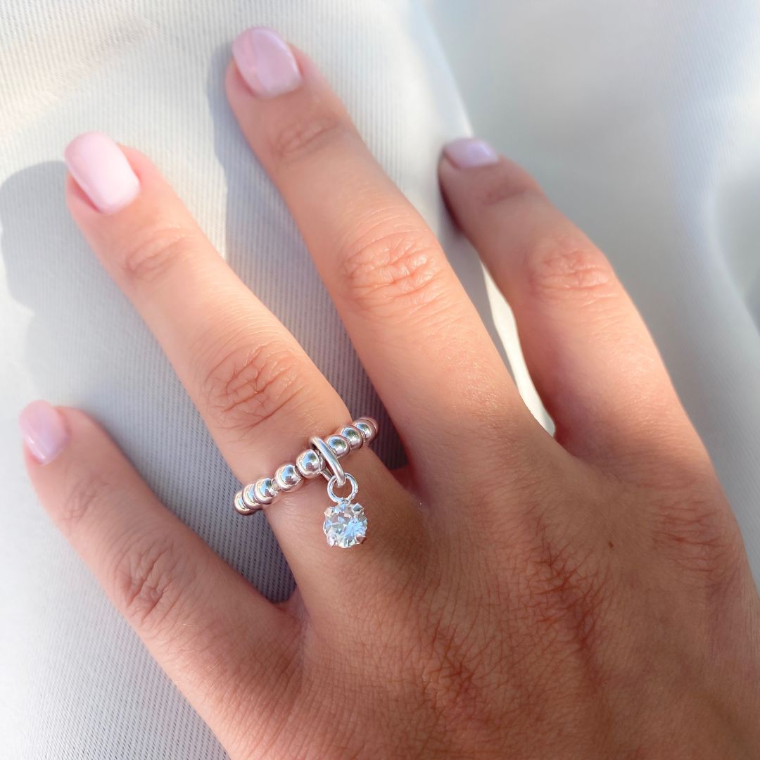 Elegant and personal, this beaded ring features a sparkling customisable birthstone charm, making it a meaningful addition to any jewellery collection.