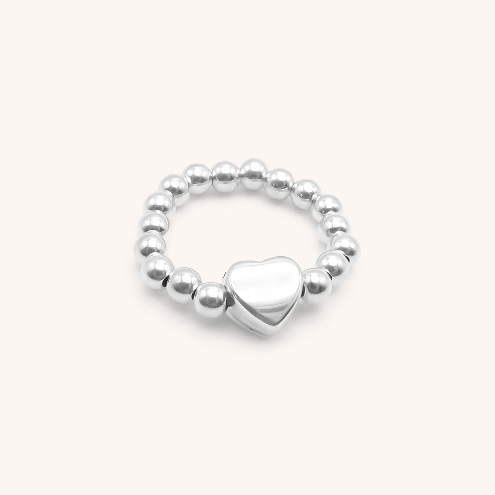 Timeless and elegant, this beaded ring features a personalised heart charm, engraved with an initial of your choice. The polished silver heart adds a touch of sophistication, making it a meaningful piece for everyday wear.
