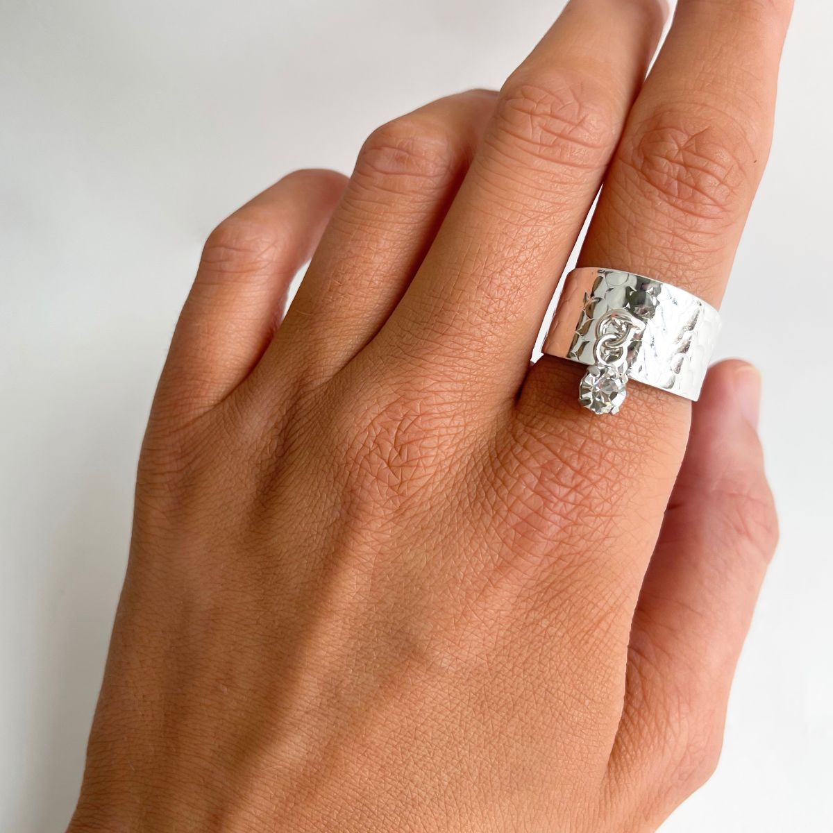 Make your jewellery truly unique with this adjustable ring, featuring a stunning hammered texture and a customisable birthstone charm. Whether it’s a symbol of your birth month, a meaningful stone, or a thoughtful gift, this personalised piece is designed to shine.