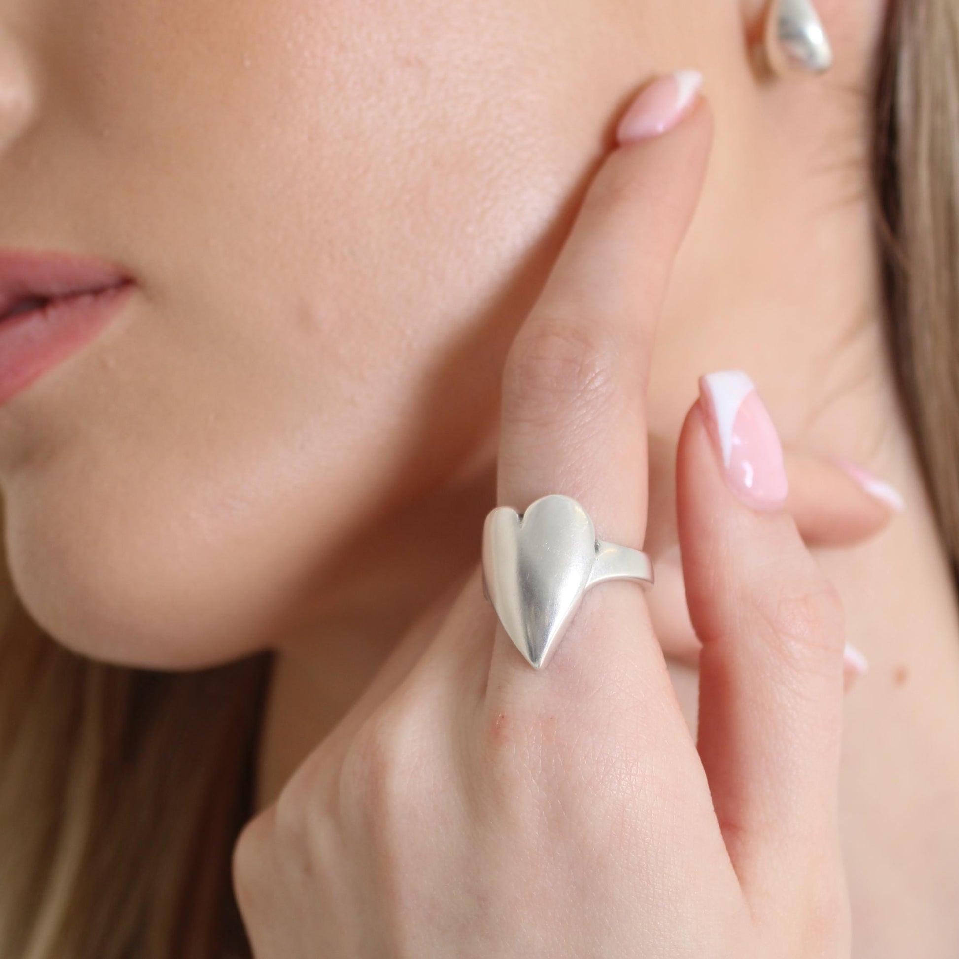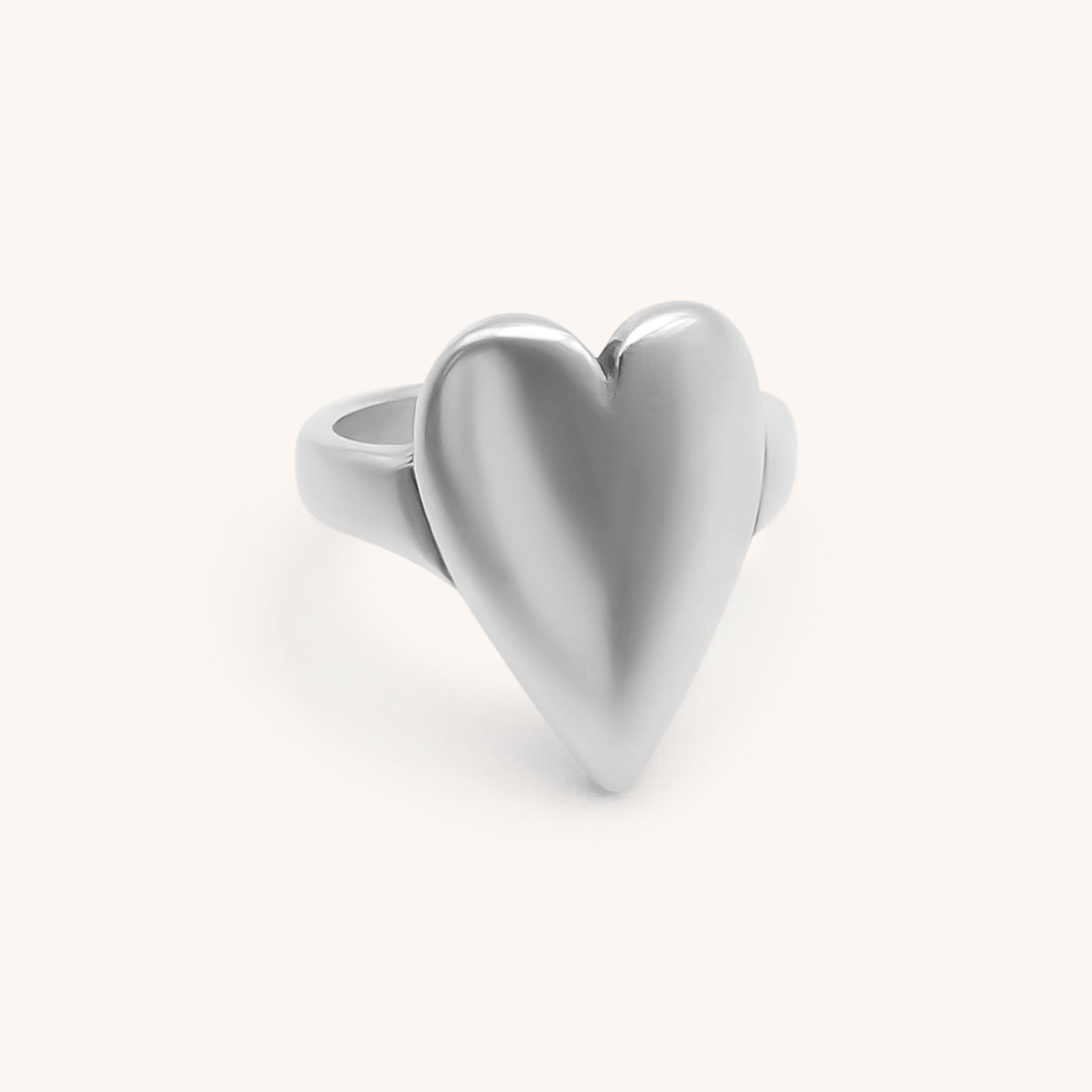 Make a statement with this heart ring, crafted with a solid, weighty feel for a luxurious finish. Featuring a smooth, sculpted heart design, this bold piece adds a touch of romance and elegance to any look.