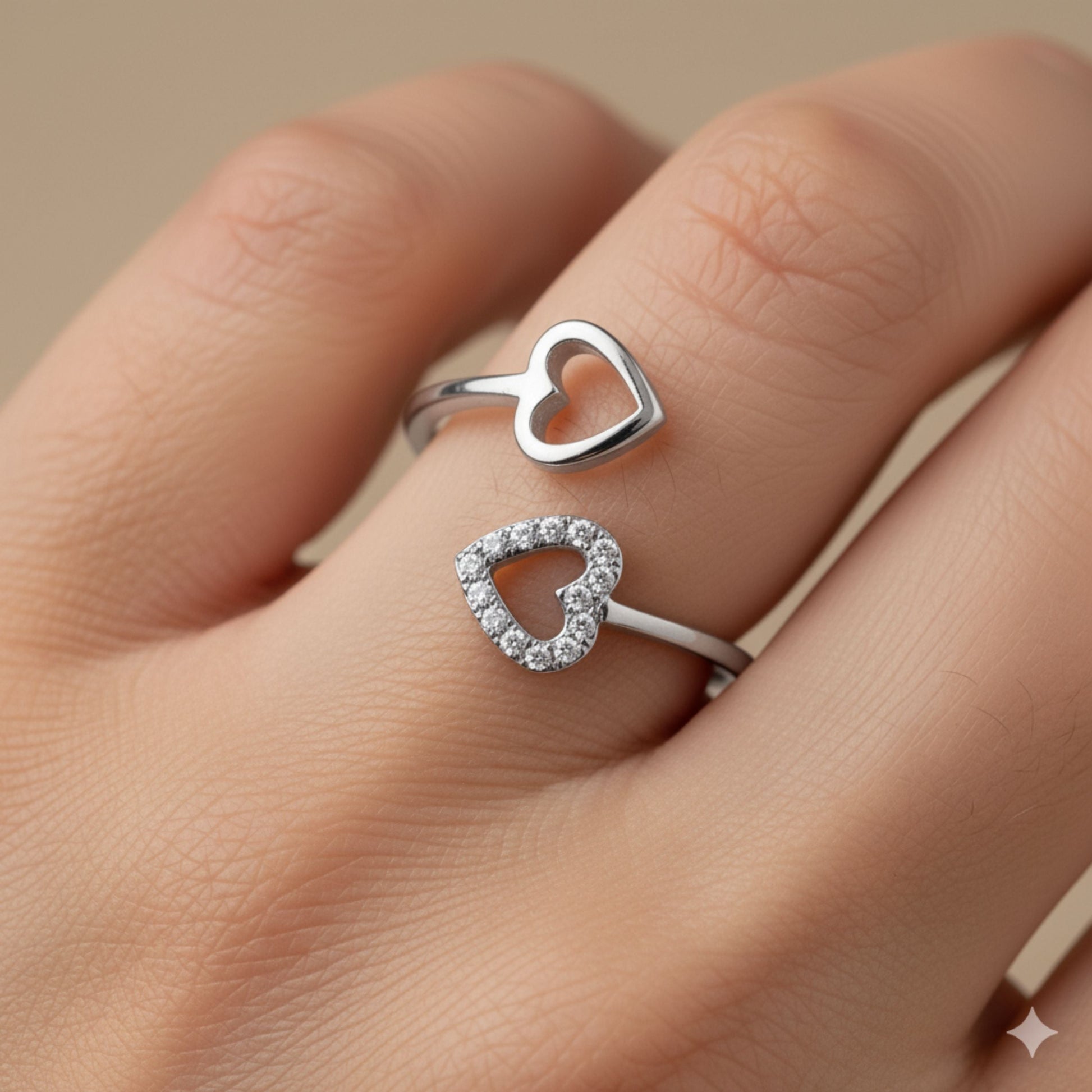 Timeless and versatile, the Halo Heart Ring pairs two silver hearts – one sleek and minimal, the other surrounded by a halo of sparkling stones. A contemporary twist on classic romance.