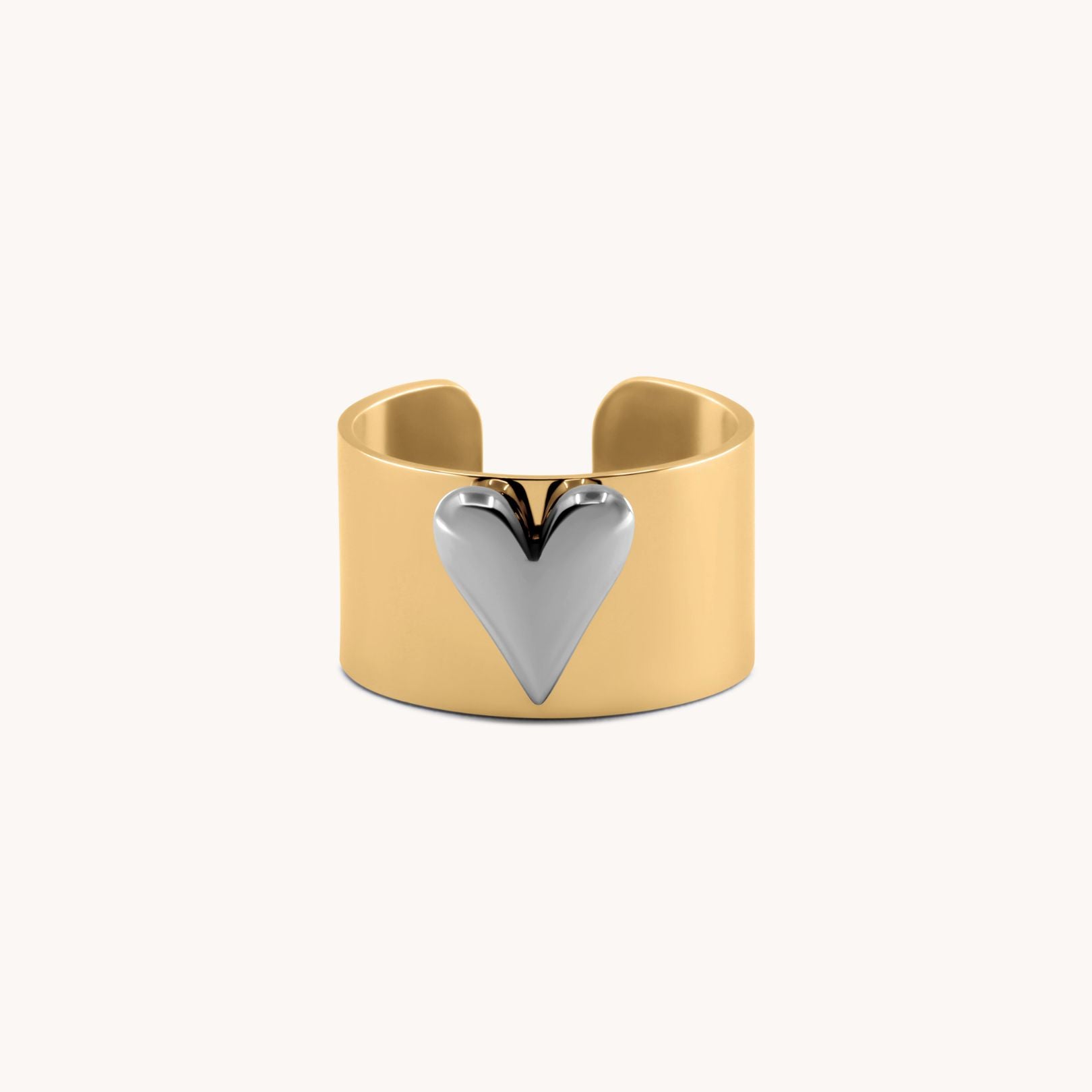 30R5117GS - Celine Heart Statement Ring, Gold & Silver